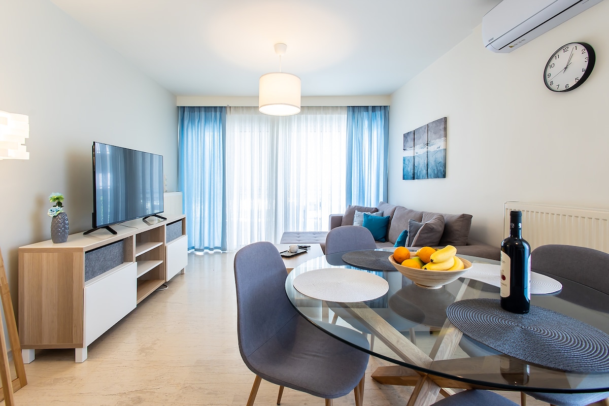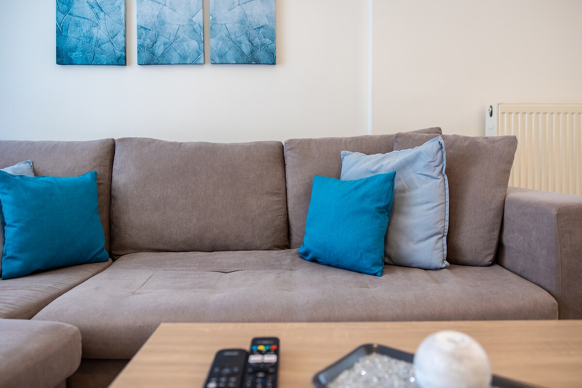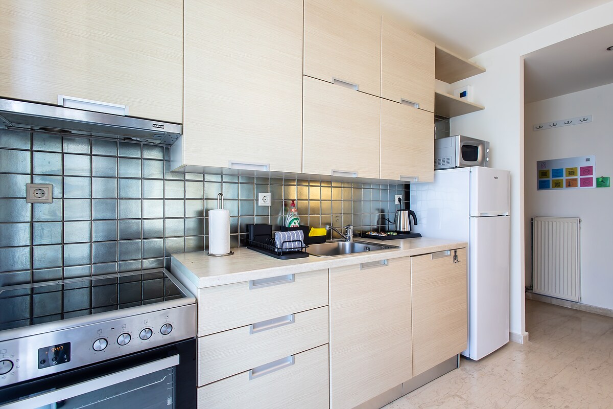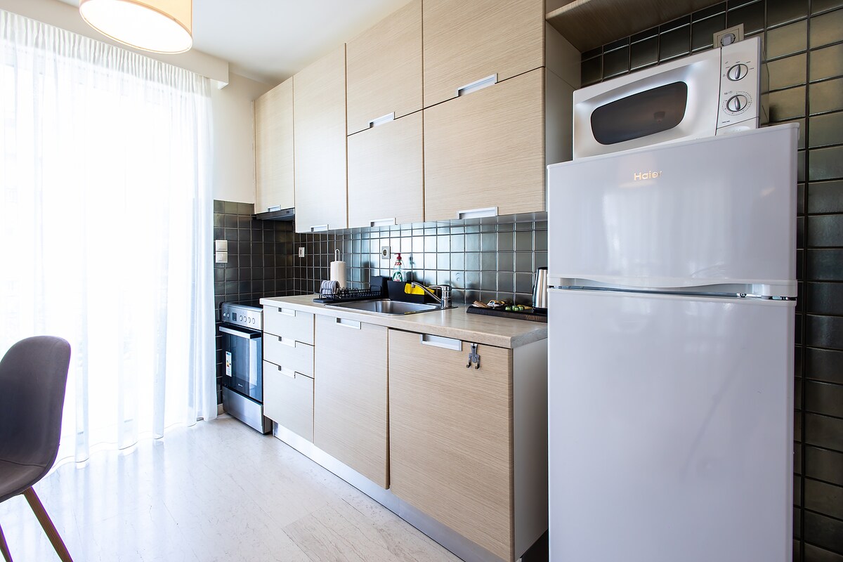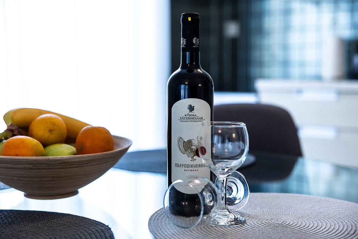 Step into a space where modern style meets comfort, all designed to enhance the stunning city views. This apartment is designed to be elegant and cozy, punctuated with splashes of color and practicality for a quiet place in Athens. From crisp linens ensuring restful sleep to a variety of electrical devices, every detail caters to an easy, memorable stay.